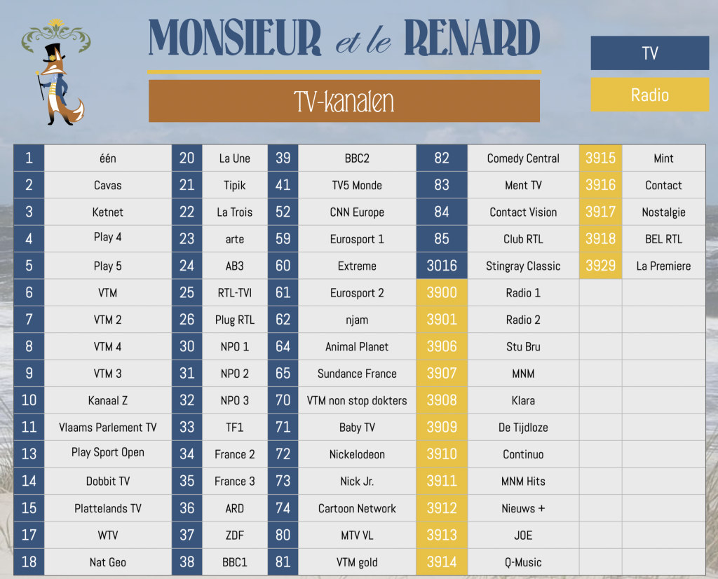 Digitale TV TV(*)- en Radio kanalen (*) Je kan ook je favoriete kanalen streamen vanop je smartphone naar de TV.